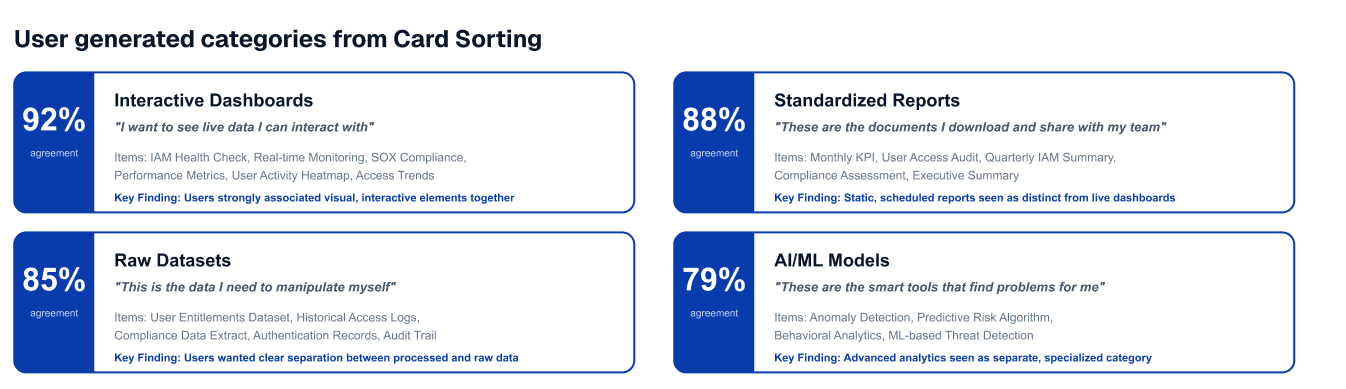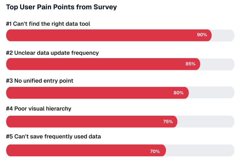 With so much data and functionality to understand we worked with users, to help us understand their needs. Research highlighted users top pain points and critical insights that would help shape design decisions.